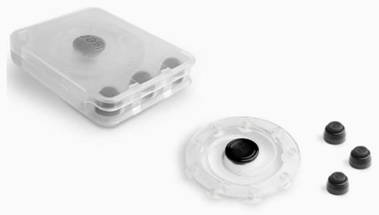 В комплект входят три кнопки и джойстик, которые можно транспортировать в компактном пластиковом кейсе. Кнопки крепятся к экрану при помощи высококачественных присосок из электропроводящей резины, передающей движение пальца к дисплею. Аналоговый джойстик предназначен для движения в разных направлениях. Он крепко держится на экране при помощи 9 миниатюрных присосок.