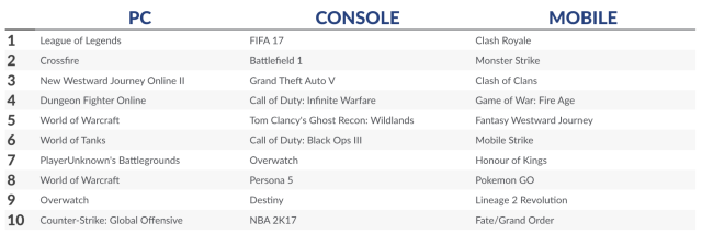 Специалисты отмечают, что мобильный сегмент остаётся устойчивым, демонстрируя рост на 8% по сравнению с апрелем 2016 года. Продажи контента условно-бесплатных игр увеличился на 27%, а выручка от премиальных продуктов для PC и консолей упала.