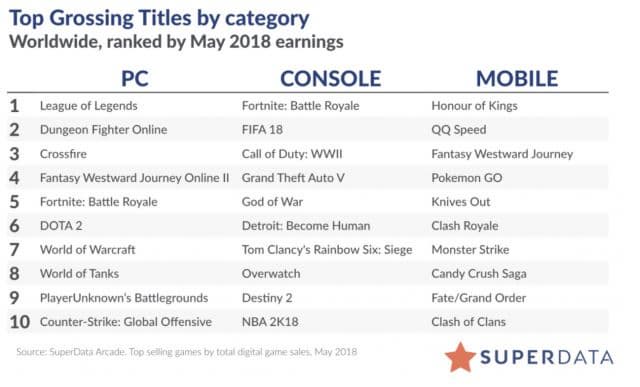 Ниже представлены самые успешные игры мая для РС, консолей и мобильных устройств по версии SuperData: