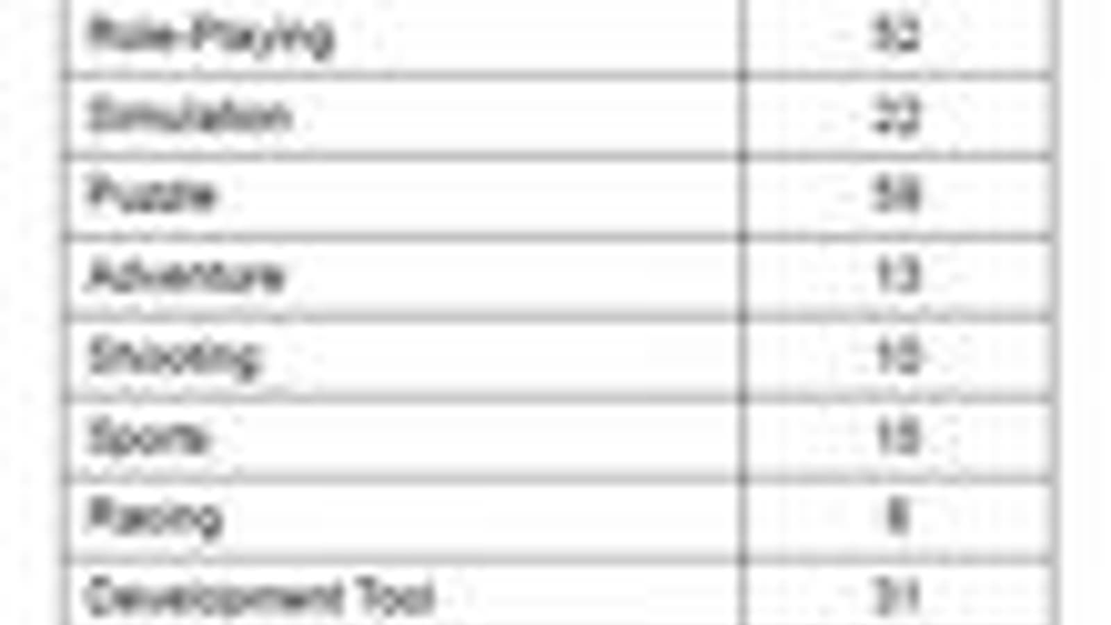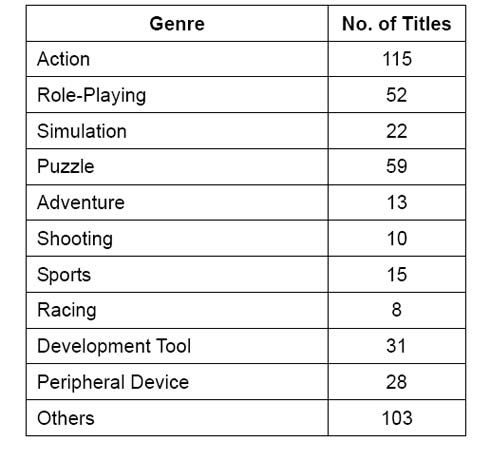 Что касается разделения по жанрам, то экшены и боевики по-прежнему являются самыми популярными играми - всего на выставке будет 115 игр в данном жанре. Головоломки и ролевые игры занимают, соответственно, второе и третье места.