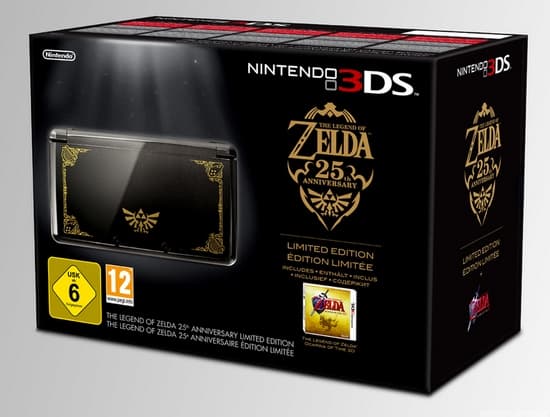 В бандле под названием The Legend of Zelda 25th Anniversary Limited Edition Nintendo 3DS будет представлена копия игры The Legend of Zelda: Ocarina of Time 3D и консоль в цвете Cosmic Black, украшенная орнаментом и соответствующим логотипом. Золотой цвет также использован на 3D-слайдере и кнопках.