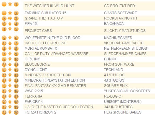 Как и ожидалось, первое место заняла ролевая игра The Witcher 3: Wild Hunt, результат который за первую неделю оказался на 608% лучше, чем у второй части серии, выпущенной в 2012 году.