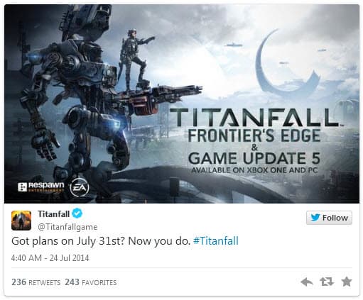 Разработчики из студии Respawn Entertainment сообщили о том, что следующая порция дополнительного контента для мультиплеерного шутера от первого лица Titanfall под названием Frontier’s Edge выйдет на РС и Xbox One 31 июля.