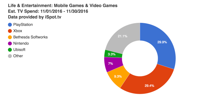 Компания iSpot.tv, поделилась информацией о том, какие игровые бренды потратились больше всего на телевизионную рекламу в США за ноябрь 2016 года на популярных ТВ-каналах и сетях.
