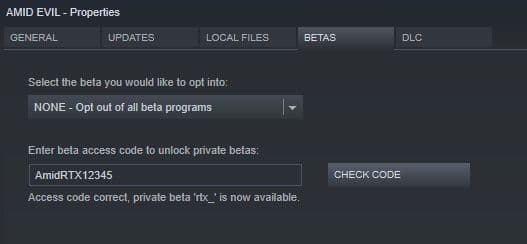 Для того чтобы оценить обновление, нужно войти в свойства Amid Evil в библиотеке Steam, выбрать раздел Betas и ввести код AmidRTX12345. Разработчики с нетерпением ждут отзывов игроков о реализации технологии с целью устранить баги и недочёты.