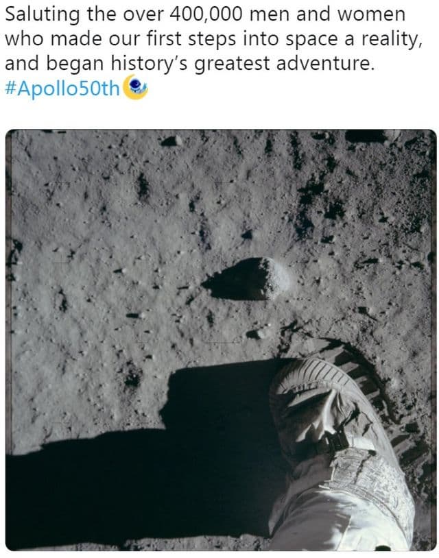 «Приветствуем более 400 тысяч мужчин и женщин, которые сделали свои первые шаги в космос. Так началось величайшее в истории приключение».