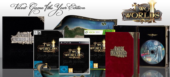 Версия Two Worlds II: Velvet Game of the Year Edition для РС и Mac будет поставляться в боксе, драпированном черным вельветом, версии для PS3 и Xbox 360 - в красном вельветовом боксе.