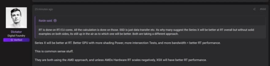 Крис Граннелл опубликовал свое сообщение в ответ на информацию одного из представителей Digital Foundry. Сотрудник британской команды подтвердил, что именно Xbox Series X обеспечит лучшую трассировку лучей.
