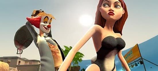 Сражения в этом шутере от первого лица будут разворачиваться на различных голливудских съемочных площадках. В вашем распоряжении окажутся классические персонажи фильмов категории B, включая девушку в бикини, загорелого спортсмена, страшного клоуна и так далее. Арсенал оружия, как видно на представленном скриншоте, порадует своим разнообразием.