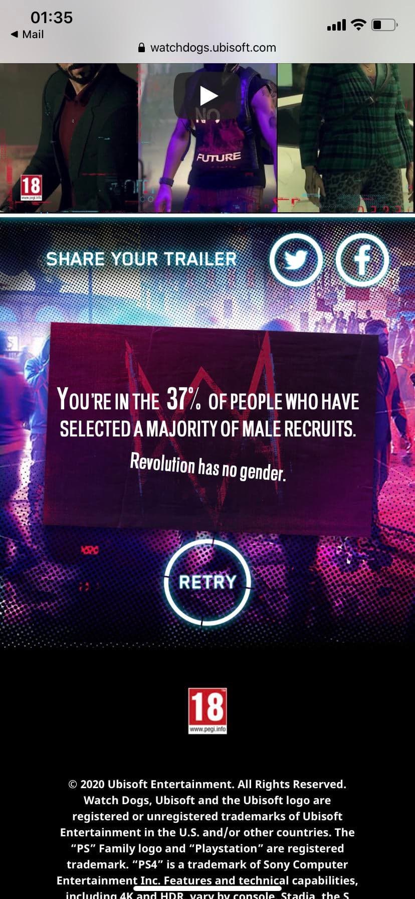 Один из пользователей Reddit поделился забавной историей про Ubisoft. Ему на электронную почту пришло письмо от компании с предложением собрать команду революционеров для Watch Dogs: Legion, которые затем станут героями нового трейлера. Недолго думая, он набрал бунтарей и получил вот такое статичное сообщение: