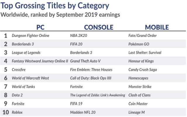Ниже представлены списки из 10 самых успешных игр на РС, консолях и мобильных устройств по версии SuperData.