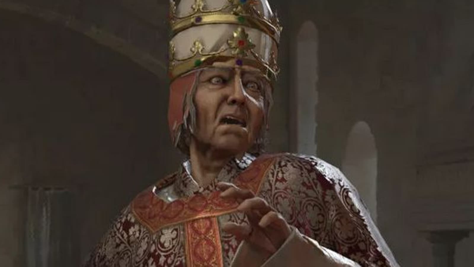 Отбив ещё один крестовый поход, скандинавы разграбили Рим, и к ним в плен попал человек в подозрительно большой шляпе. Если вы взяли кого-то в плен в Crusader Kings 3, то человека можно казнить. Однако если персонаж является каннибалом, то пленника можно казнить и съесть. Так Папа Римский стал блюдом для правителя. После поедания Папы Римского показатель стресса Бьерна снизился на 40 пунктов, но в результате поедания человечины Бьерн заболел.