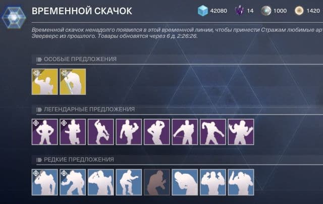 Однако Bungie решила изменить правило и добавила временное событие «Временной скачок», которое позволит игрокам получить «эмоции» предыдущих сезонов за внутриигровую валюту «серебро». «Серебро» можно приобрести только за реальные деньги, к примеру, 500 единиц стоят 365 рублей. Экзотическая эмоция стоит 1000 «серебра», легендарная – 500, а редкая – 200.