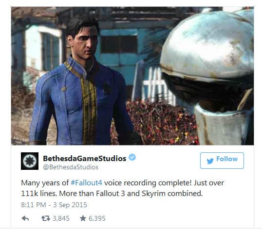 Актеры озвучили более 111 тыс. строк текста, а это больше, чем было в Skyrim и Fallout 3, вместе взятых.
