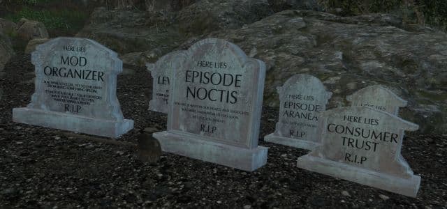 На прошлой неделе компания Square Enix сообщила об отмене трёх из четырёх дополнения для Final Fantasy XV и прекращении развития РС-версии. Пользователь под ником Mrsaturn241 добавил в игру могилы отменённых дополнений. Также в виртуальном мемориальном комплексе покоится полноценная поддержка модификаций и «Доверие покупателей».