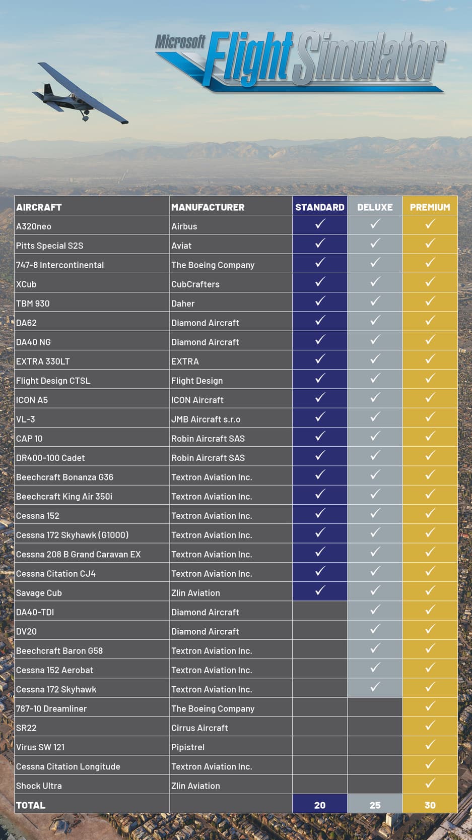 Базовая версия включает 20 самолётов и 30 аэропортов, а в более дорогих изданиях их больше. Стоит ли доплачивать? Мнения разделились, но стоит подчеркнуть одну вещь — игроки получат доступ «почти во все аэропорты мира».