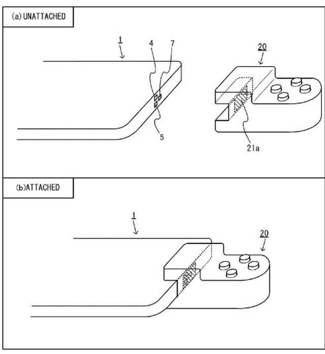 В одном из патентов упоминается аксессуар, который можно установить на «устройство обработки информации». На прилагаемых изображениях видно подобие контроллера. На съёмной части могут располагаться различные кнопки.