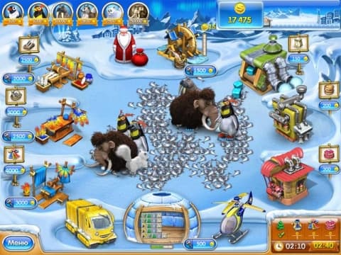 Работа на Северном полюсе будет сложной, но интересной! 90 заданий ждут настоящего хозяина, способного принимать мудрые решения даже в условиях вечной мерзлоты. Чтобы обеспечить покупателей новыми вкусными товарами и забавными сувенирами, на ферме обновлено звериное поголовье, построены дополнительные мастерские и закуплена эффективная техника. Новые помощники - мамонты - скатают снежки для цеха по изготовлению фруктового льда, а курьеры на снегоходах мгновенно доставят лакомство в город..