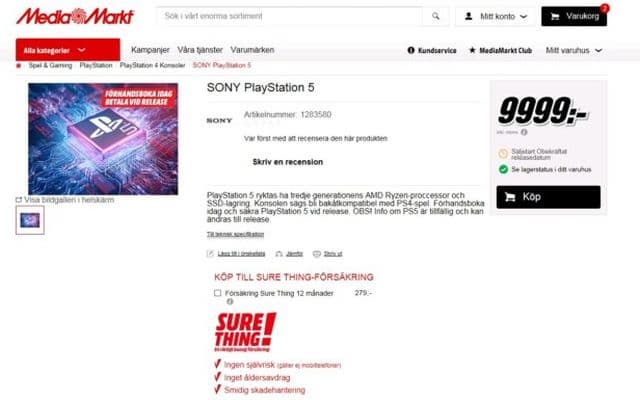 В MediaMarkt Sweden устройство называется PlayStation 5, хотя Sony ещё не сообщила широкой общественности официальное имя новой консоли. Новинку оценили в 9999 шведских крон (примерно 1050 долларов или 950 евро). Подробностей о PlayStation 5 в описании устройства на сайте MediaMarkt Sweden нет. Нет там и точной даты выхода. Стоит отметить, что цена в 9999 крон может быть просто заглушкой для сайта, и не имеет отношения к реальности.