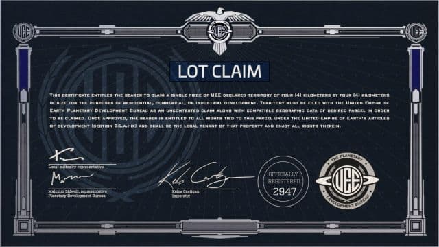 Виртуальную землю размером 4х4 км можно купить за $50. Она будет оборудована маяком Geotack, который указывает точные координаты и в режиме реального времени сообщит о погоде и находящихся на нём посторонних. Земельный надел размером 8х8 км с тем же маяком продают со скидкой за $100. После оплаты $50 или $100 будет выдана лицензия, но претендовать на землю до выхода игры нельзя. Эти деньги пойдут на развитие Star Citizen.
