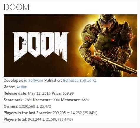 Теперь же, через три месяца после появления игры в продаже, в популярном сервисе цифровой дистрибуции компьютерных игр реализовано более 1 млн копий DOOM.