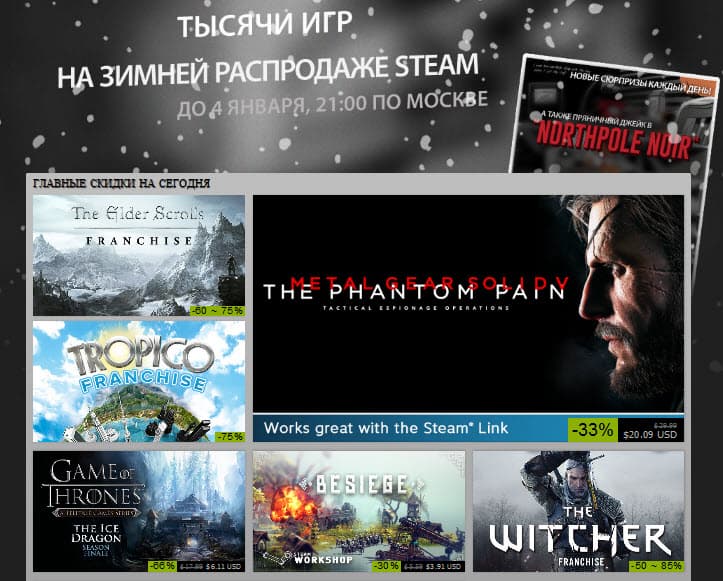 Как и ожидалось, в сервисе цифровой дистрибуции компьютерных игр Steam стартовала зимняя распродажа, которая продлится до января следующего года.