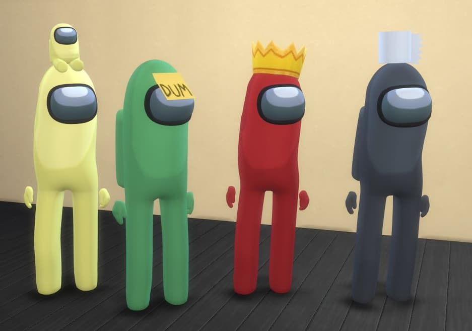 Поклонники The Sims 4 не прошли мимо того факта, что Among Us стала модной игрой. Энтузиаст под ником FakePikachu опубликовал модификацию для The Sims 4, которая добавляет в игру облики персонажей из Among Us. Есть даже облик мёртвого персонажа из Among Us, и ваш сим может превратиться в половину человека с торчащей костью.