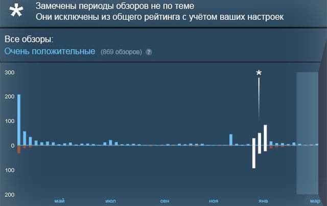 В блоге Steam появилось сообщение, в котором сотрудники Valve рассказали о новом взгляде на пользовательские обзоры к играм. Недавнее изменение, когда график показывал соотношение положительных и отрицательных отзывов и выявлял дни, в которые происходили массовые бомбардировки негативными обзорами, не принёс должного результата. Скоро такие «атаки» перестанут учитываться в рейтинге игры, так как обычно не связаны с качеством продукта.