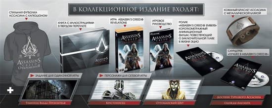 - Диск с анимационным короткометражным фильмом Assassin's Creed: Embers, который расскажет о финальной главе в истории Эцио