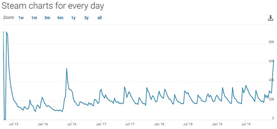 После премьеры сериала «Ведьмак» от Netflix популярность «Ведьмак 3» от CD Projekt Red в Steam постоянно растёт. На момент написания новости по данным портала Steamdb в игре находится более 56 тысяч игроков, а 24-часовой пик превышает 62 тысячи человек. Игра входит в десятку самых популярных игр платформы Valve. Это больше чем после выхода дополнения «Кровь и вино». Напомним, максимальный пик игры на релизе превышал 92 тысячи игроков.