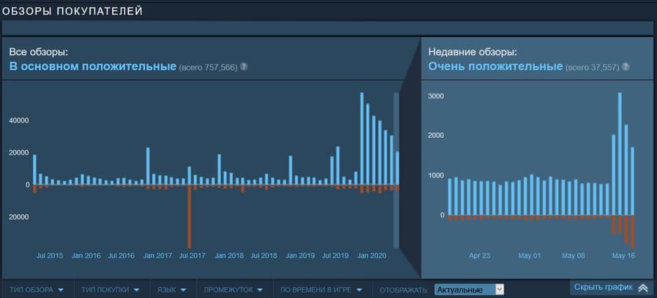 За последние четыре в Steam появилось более 2,4 тысяч отрицательных обзоров на Grand Theft Auto V и около 9,1 тысячи положительных.