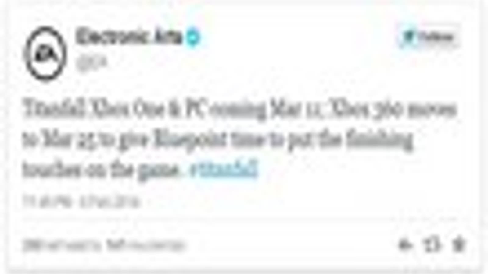 ЕА сразу же уточнила, что версии для РС и Xbox One выйдут в срок - 11 марта.