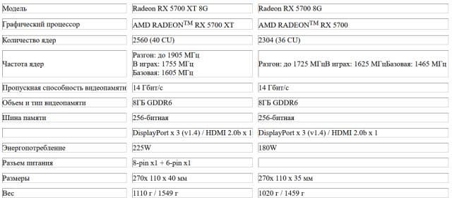 Технические характеристики видеокарт - картинка кликабельна