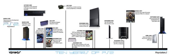 На этой неделе мы уже сообщали о том, что вторая игровая консоль, выпущенная компанией Sony, отпраздновала свое десятилетие. На сайте Kotaku опубликовали временную линейку PS2, которая демонстрирует основные моменты в истории консоли.