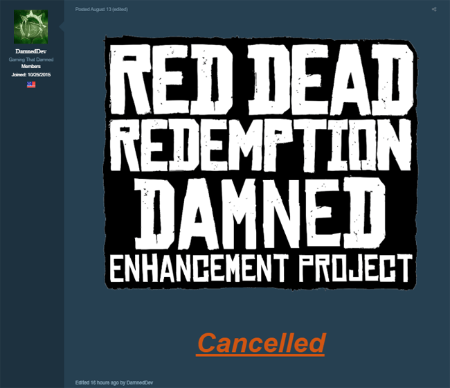Проект Red Dead Redemption: Damned Enhancement должен был использовать эмуляторы Xbox 360 и PlayStation 3 для запуска игры на PC. Разработчики хотели добавить улучшенные текстуры, модели, интерфейс и внести другие изменения.