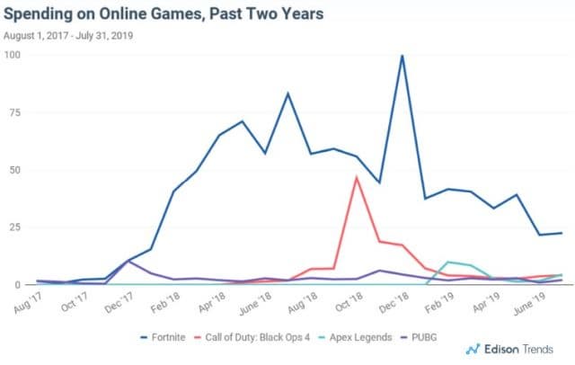 - В октябре 2018 года расходы игроков на Call of Duty: Black Ops IIII почти сравнялись с Fortnite. В июле 2019 года игроки оставили в игре в два раза больше, чем в PUBG.