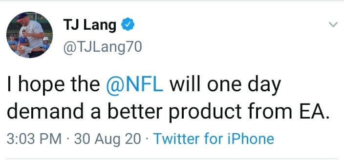 В сети уже звучат призывы о том, чтобы лишить компанию Electronic Arts права на выпуск игр по лицензии «Национальной футбольной лиги». Бывший профессиональный игрок в американский футбол Томас Джон «Т. Дж.» Лэнг выразил надежду, что когда-нибудь НФЛ потребует у Electronic Arts выпустить хороший продукт.