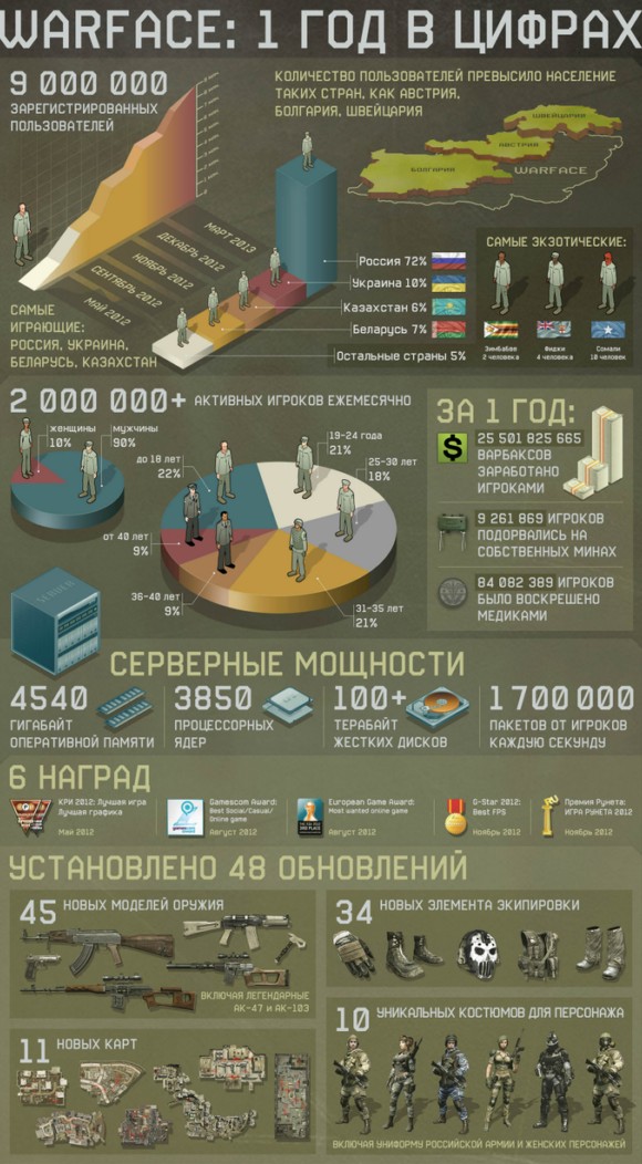 Мировая премьера многопользовательского онлайнового шутера от первого лица Warface, созданного кивевским офисом Crytek на CryEngine 3, состоялась в России ровно год назад, а сегодня команда проекта подводит итоги этих двенадцати месяцев.