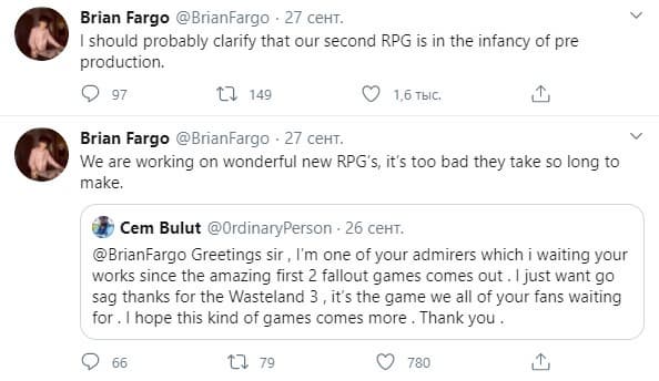 Глава студии InXile Entertainment Брайан Фарго лишь недавно закончил работу над тактической, очень тепло принятой, изометрической ролевой игрой Wasteland 3. В сообщении в твиттере автор сообщил, что начал трудиться над новой игрой в том же жанре. Не исключено, что успех и рейтинг последнего продукта команды, которая с 2018 года принадлежит Microsoft, повлияли на выбор следующего проекта. Возможно, речь о Wasteland 4.