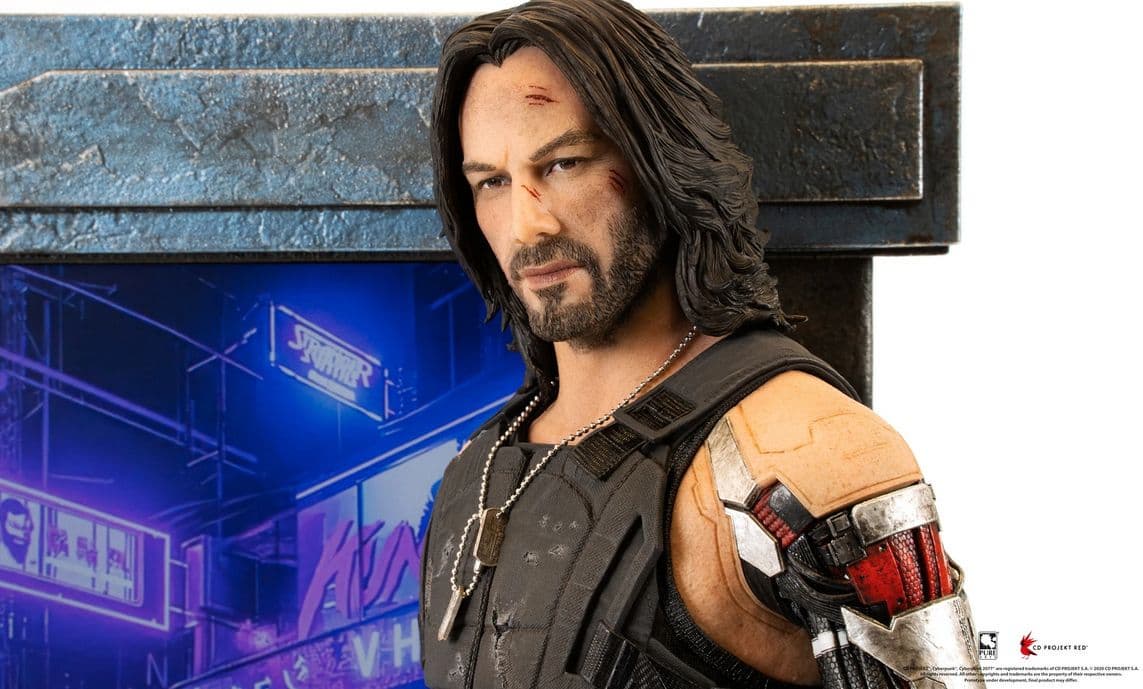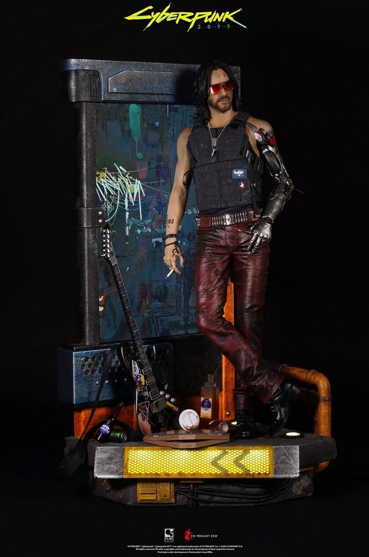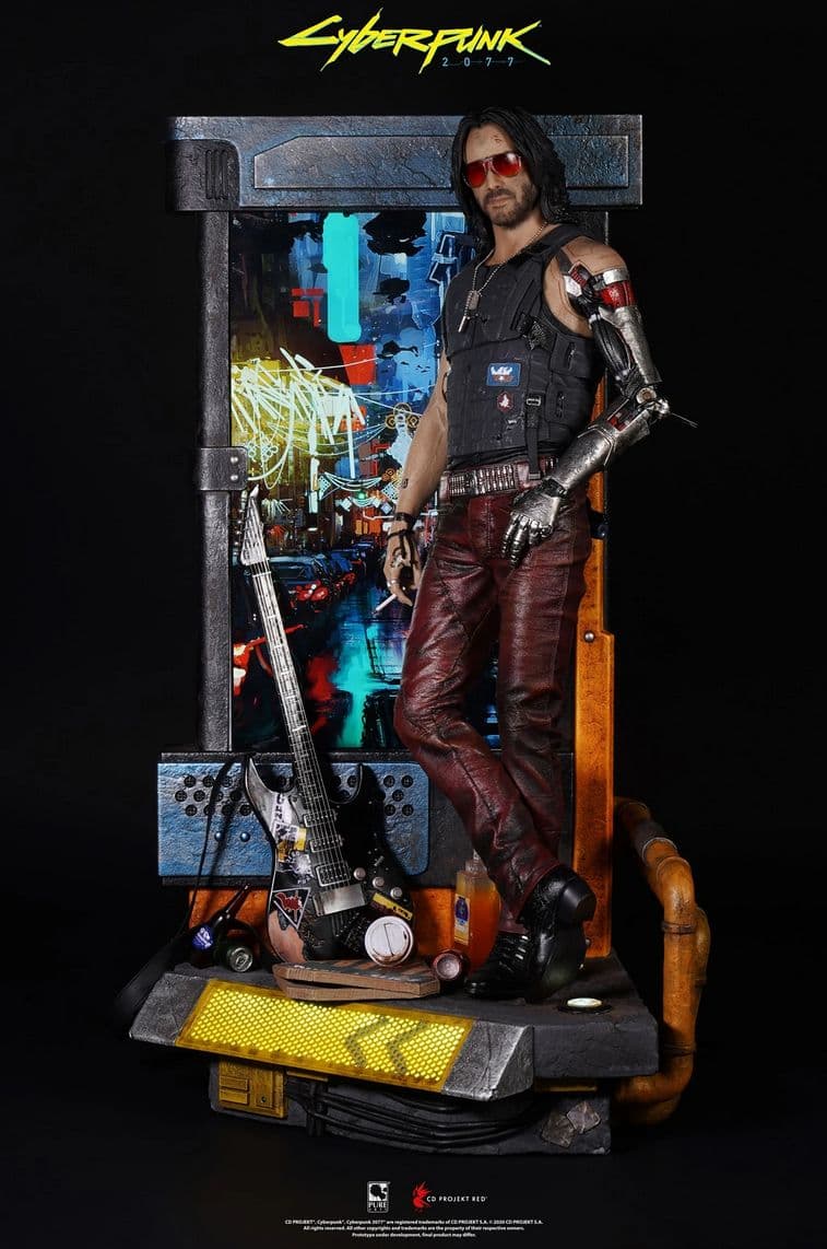 Компания PureArts Studio представила фигурку персонажа Cyberpunk 2077 Джонни Сильверхенда, роль которого исполнил Киану Ривз. Фигурка выполнена в масштабе 1 к 4 и примечательная наличием LCD-экрана диагональю 33,8 сантиметра и звуковой системой, которая может проигрывать саундтрек из Cyberpunk 2077. Прилагается подсветка подставки. Раздеть фигурку нельзя, но предусмотрены заменяемые аксессуары вроде очков и сигареты.