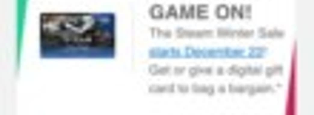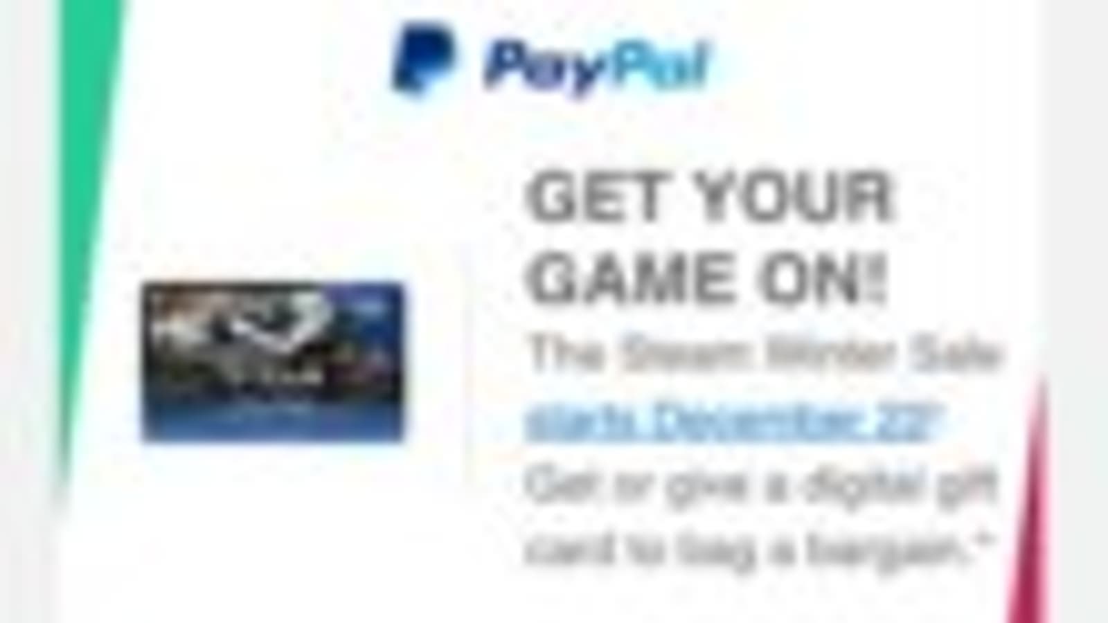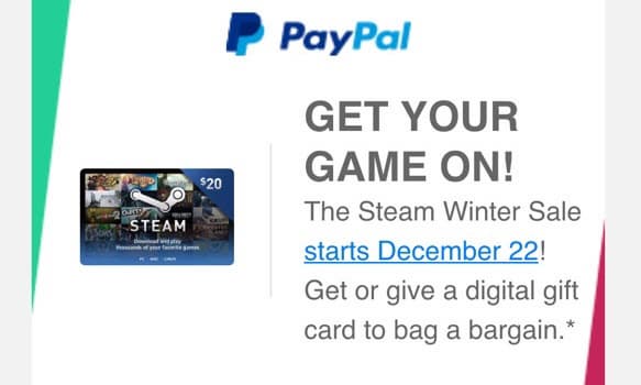 Клиенты Paypal в свежей рекламной рассылке получили информацию о том, что грядущая зимняя распродажа в сервисе цифровой дистрибуции компьютерных игр стартует 22 декабря.