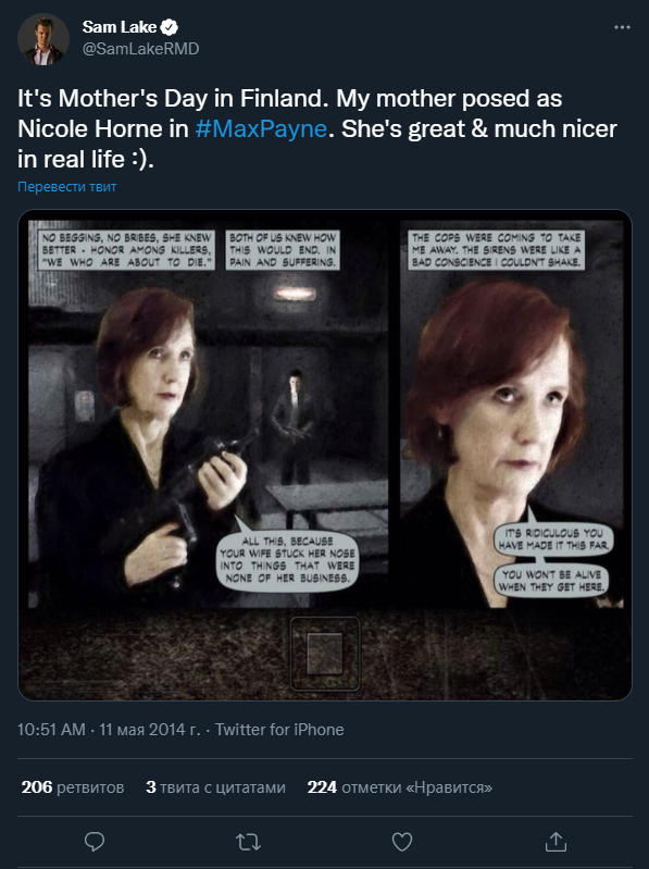 Что ещё потрясало, так это реалистичность персонажей. У всех были отлично нарисованные лица, изображающие эмоции, а улыбка Сэма Лэйка стала визитной карточкой Макса Пейна, как и тот самый легендарный наряд. Занимательный факт: на роль главной злодейки, Николь Хорн, пригласили мать Лэйка и полностью списали с неё облик персонажа.