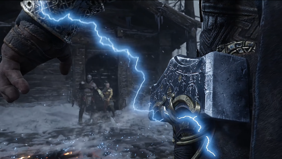 Следующая сцена принадлежит второму антагонисту God of War Ragnarok. Сон Атрея, когда Тор наведался к ним, всё-таки сбудется. Бог грома вызывает молнии и протягивает руку к своему молоту, Мьёллниру, обращаясь к богу войны: «Ты создаёшь впечатление спокойного и рассудительного человека. Ты действительно таков?». Учитывая, что Кратос и Атрей убили его сыновей, которые должны были править после Рагнарёка вместе с Бальдром – вряд ли он наведается к ним с добрыми намерениями.