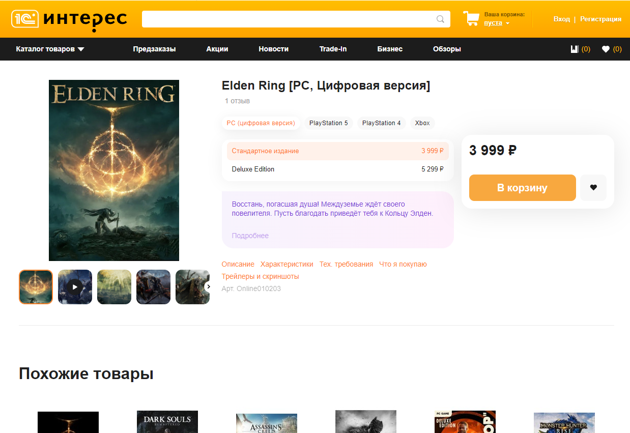 - Магазин «1С-Интерес» — один из самых старых магазинов России по продаже видеоигр давно обзавёлся каталогом цифровых товаров. В ассортименте ключи не только для игр компании 1C, но и множество проектов от других издателей.