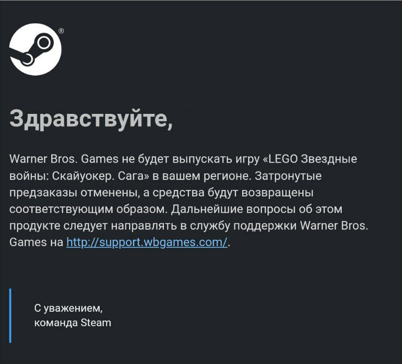 Если пользователь пополнил кошелёк собственными силами, без посредников, то возврат игры могут оформить только по причине ухода издателя из России совсем. Так произошло со мной — Warner Bros. Games отменили оформленный мной предзаказ на Lego Star Wars: The Skywalker Saga по причине их полного разрыва отношений с российским регионом. В остальном покупки с помощью внутреннего кошелька полностью безопасны.