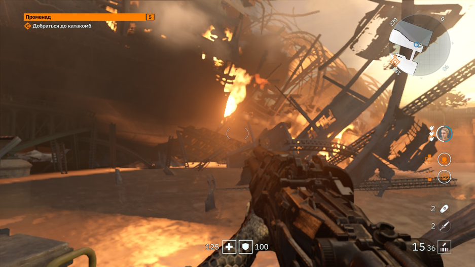 Портирование Wolfenstein 2: The New Colossus было более сложной задачей для Panic Button. Если DOOM показывала абстрактный ад и абстрактных демонов, то сиквел Wolfenstein New Order был более реалистичным. Враги — это люди, которые имеют обмундирование, броню и шлемы. Всё это разрывается на куски, противники прут толпами, а обрабатывать динамичные бои мобильному железу было крайне тяжело. Открытые локации тоже хорошо просаживали кадровую частоту. Разработчики пошли на компромисс — использовали динамическое разрешение, которое иногда снижает качество картинки примерно до 360p. Тем не менее, игра держит стабильную частоту кадров и играть в неё удобно. Но стоит ли — большой вопрос.