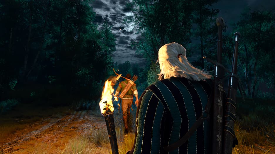 Но вот что хочется отметить — с трассировкой лучей игра преображается. Освещение, тени, отражения выглядят приятно, будто обволакивают игровой мир и добавляют реалистичности. В пещерах теперь темно — придётся использовать «Кошку» или факел. Ночью пройтись по лесу без освещения тяжеловато — только луна в небе поможет, если светит ярко. А в дождливую погоду даже днём тяжело ориентироваться на болотах Велена. Однозначный зачёт, хотя и до революционного Lumen от Epic Games ещё далековато.