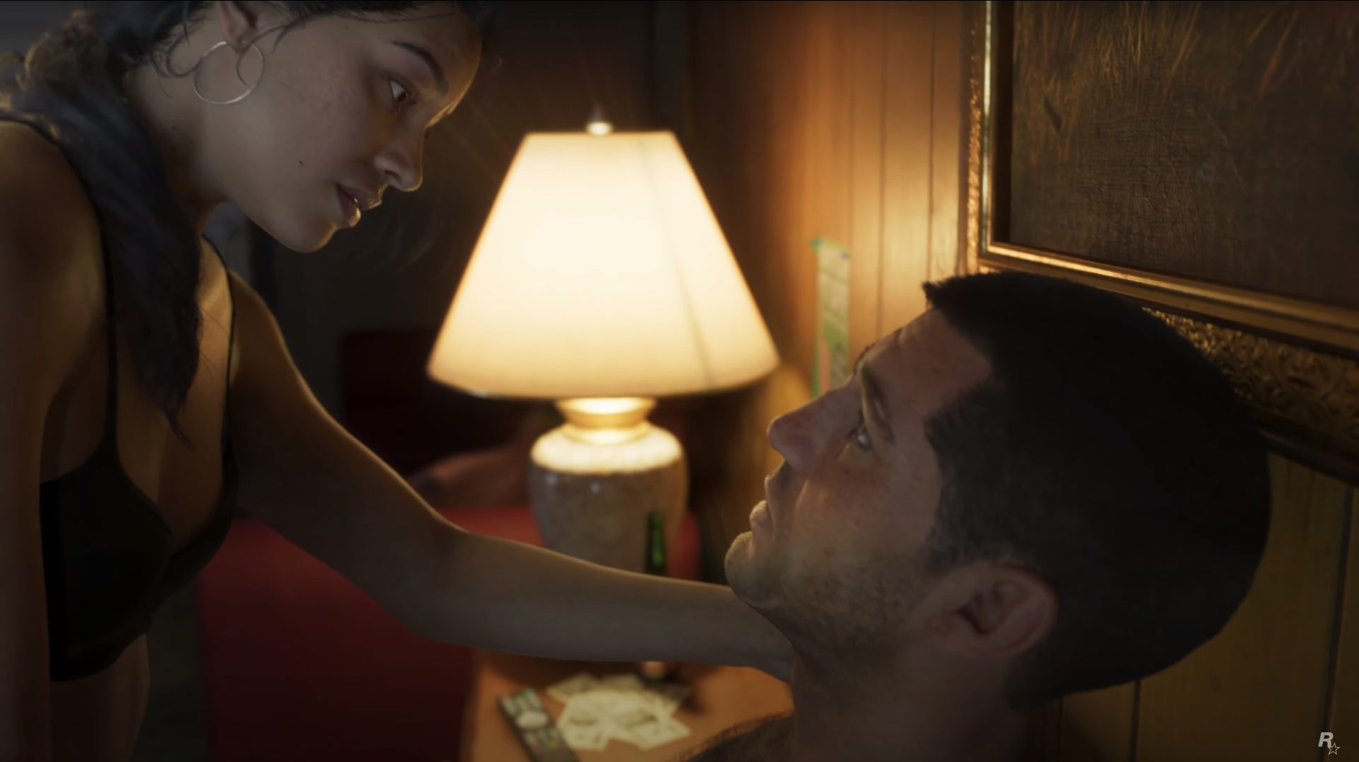 Здесь нам уже крупным планом показывают, что главные герои Grand Theft Auto VI не первый день держат пушки в руках — Люсия и мужчина-герой, если верить прошлогодним сливами, по имени Джейсон врываются в магазинчик у дороги с пистолетами наперевес, пересчитывают деньги в машине, уходят на полной скорости от погони и сидят в номере отеля вместе.