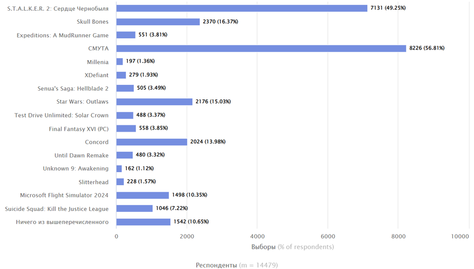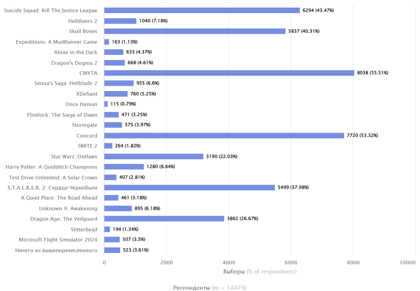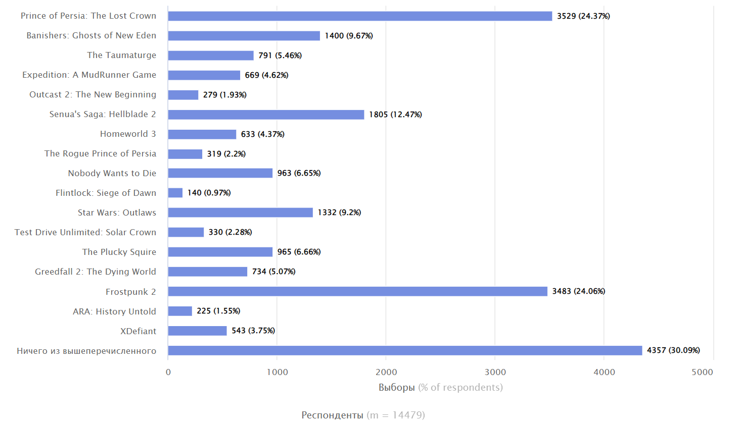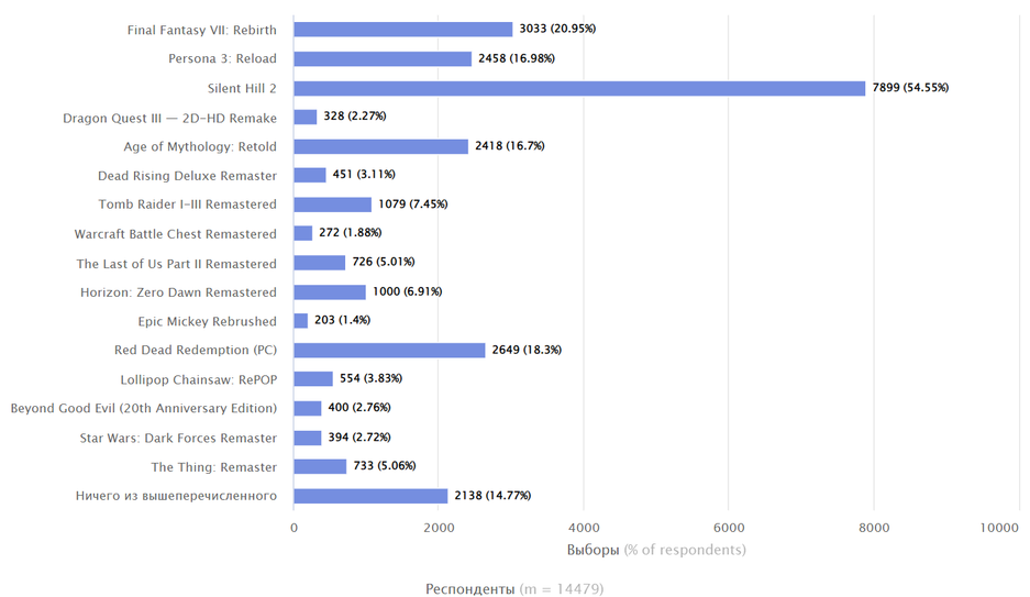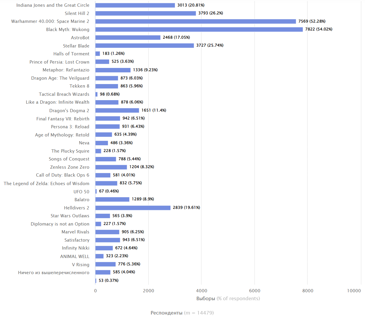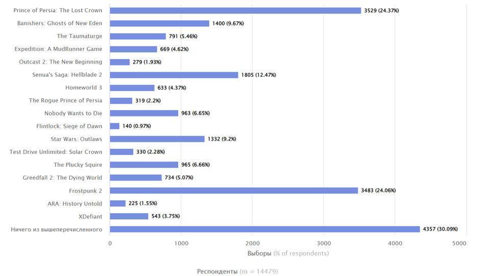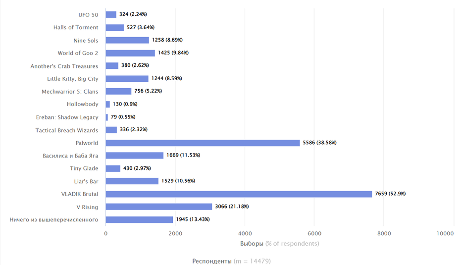 Не обращайте внимания на то, что проценты не складываются — просто большинство людей выбирало эти игры одновременно. Вот как выглядят общие итоги: