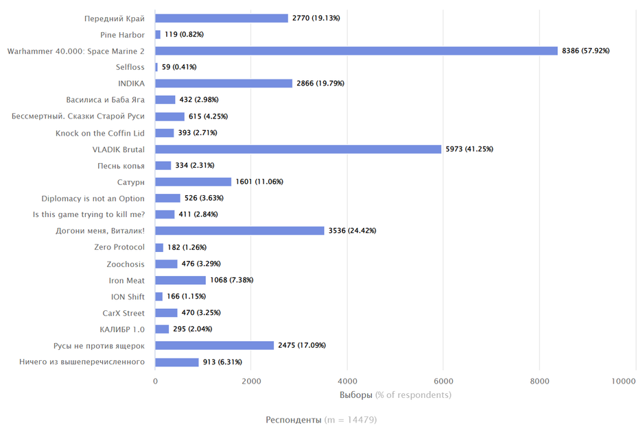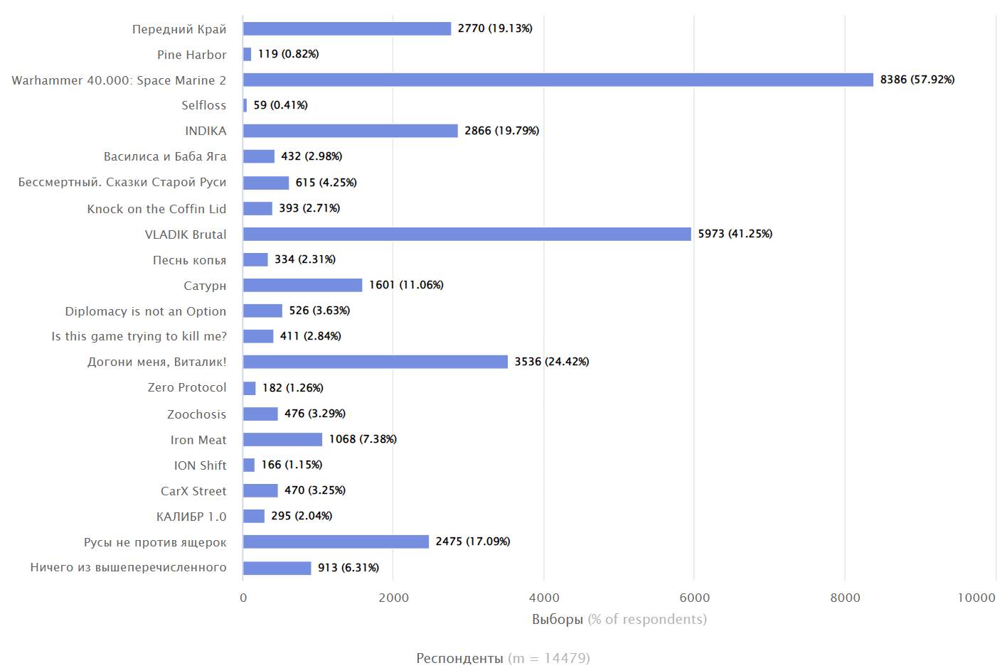 Полные итоги, где вы также отдали много голосов за «Передний край», INDIKA и «Русы не против ящерок», а также другие продукты от русских разработчиков: